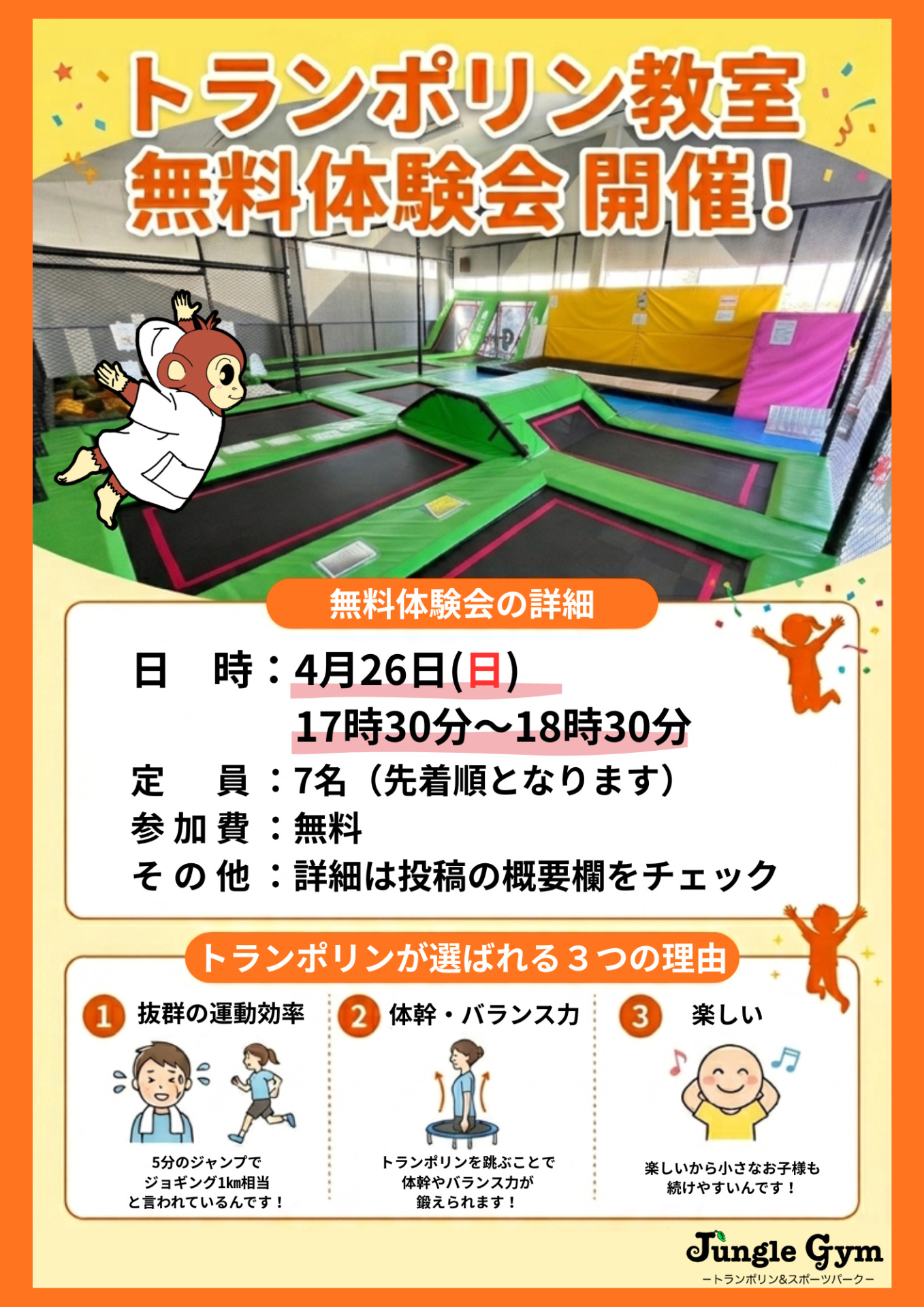 そこで、トランポリン教室の無料体験会を開催します!!